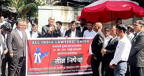 सीजेआई पर हुए हमले के खिलाफ AILU के नेतृत्व में मुंबई में वकीलों का विरोध प्रदर्शन