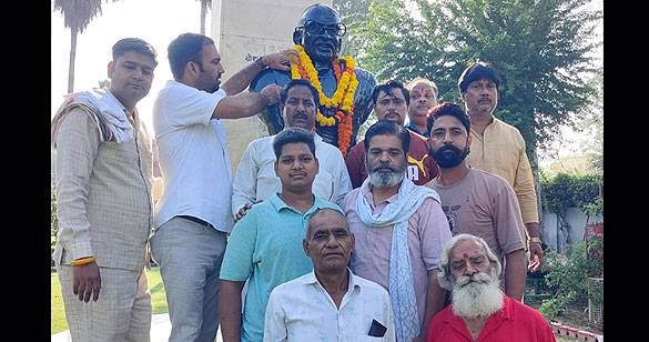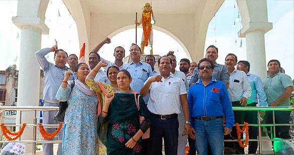गांधी जी की मूर्ति के समक्ष इकठ्ठा हो शिक्षकों ने की ऑफलाइन ट्रांसफर सूची जारी करने की मांग