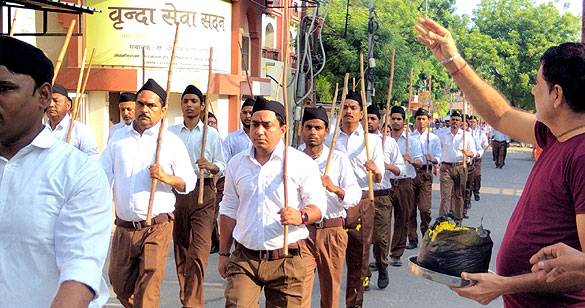 विजय दशमी उत्सव के तहत संघ ने शस्त्र पूजन के बाद किया पथ संचलन
