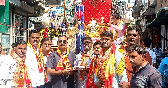 माँ वैष्णोदेवी मित्र मण्डल की विशाल शोभायात्रा का श्री वामन भगवान महोत्सव समिति ने किया स्वागत