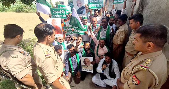 किसानों की समस्याओं को लेकर भाकियू सुनील ने किया तहसील गोवर्धन का घेराव