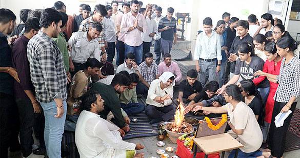 भगवान विश्वकर्मा जयंती: जी. एल. बजाज में वैदिक मंत्रोच्चार के बीच हुई मशीनों और यंत्रों की पूजा