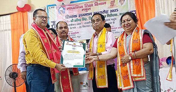 शिक्षक दिवस पर "उत्कृष्ट शिक्षक सम्मान" से अलंकृत हुए डॉ. राजीव पाण्डेय
