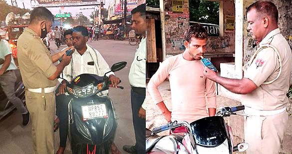 मथुरा पुलिस ने किया वाहन चालकों का ब्रेथलाइजर टेस्ट, ई- रिक्शा के चालान भी काटे