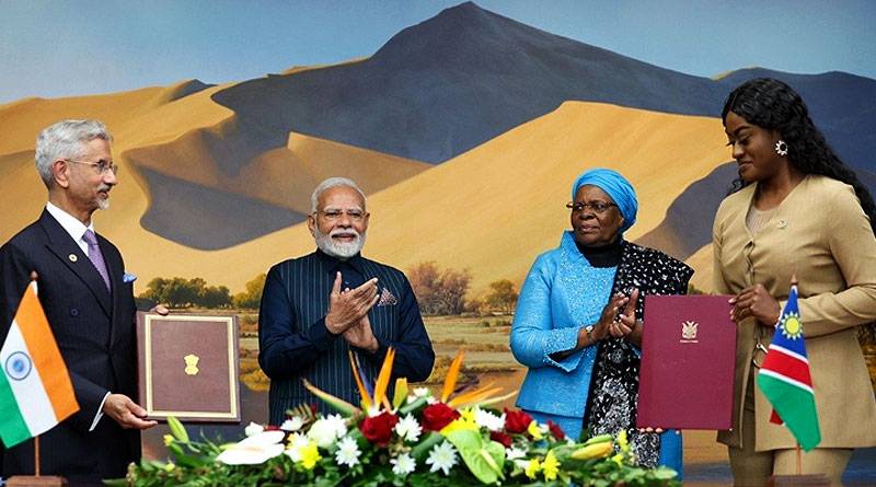 प्रधानमंत्री मोदी का नामीबिया के विंडहोक में भव्य औपचारिक स्वागत, 21 तोपों की सलामी दी गई