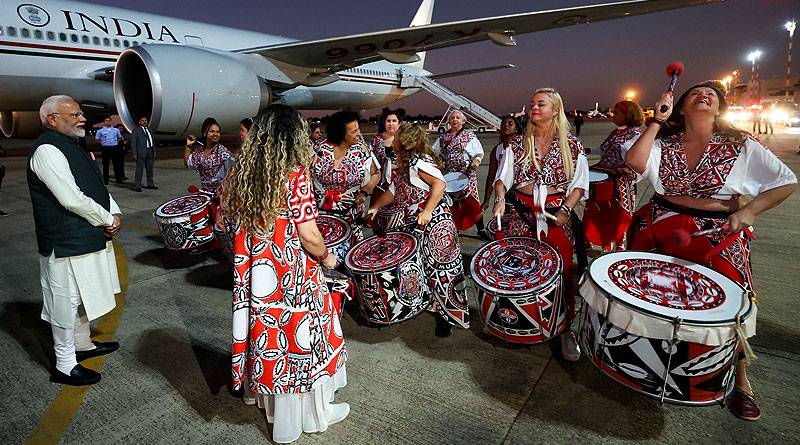 ब्राजील की राजधानी ब्रासीलिया पहुंचे PM मोदी, पारंपरिक सांबा रेगे की प्रस्तुति से हुआ स्वागत
