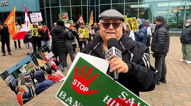 हिंदुओं पर अत्याचार को लेकर कनाडा के टोरंटो में बांग्लादेशी वाणिज्य दूतावास के बाहर प्रदर्शन