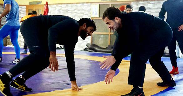 पहलवानों से मिलने हरियाणा के झज्जर में अखाड़े पहुंचे राहुल गांधी