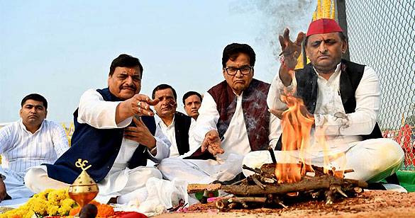 मुलायम की जयंती पर अखिलेश ने सैफई में किया पिता के स्मारक का भूमि पूजन