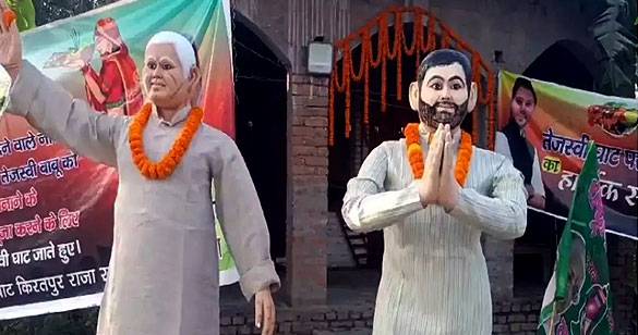 राजद कार्यकर्ताओं का गजब कारनामा, छठ पर लालू और तेजस्वी की मूर्ति पूजा