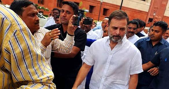 लोकसभा की सदस्यता बहाल होने के बाद संसद पहुंचे कांग्रेस नेता राहुल गांधी