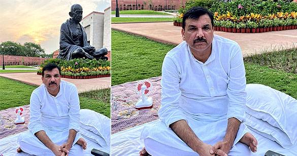 संजय सिंह के निलंबन को लेकर संसद परिसर के बाहर रात भर जारी रहा प्रदर्शन