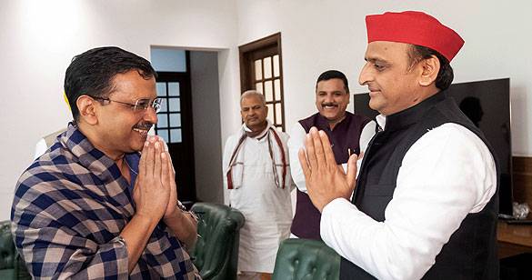लखनऊ में अखिलेश यादव से मिले दिल्ली के मुख्यमंत्री अरविंद केजरीवाल