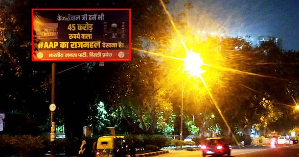 भाजपा ने रैली स्थल के पास केजरीवाल के खिलाफ बैनर टांगे, 45 करोड़ पर जवाब मांगा