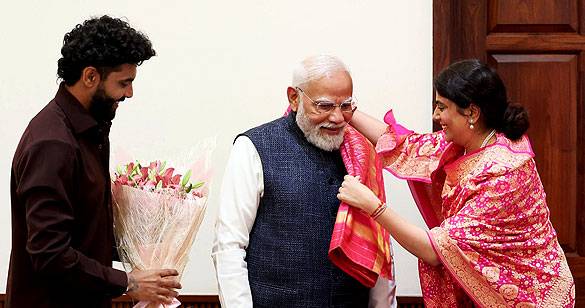 गुजरात में मंत्री बनने के बाद पति रविंद्र जडेजा के साथ पीएम मोदी से मिलीं रिवाबा