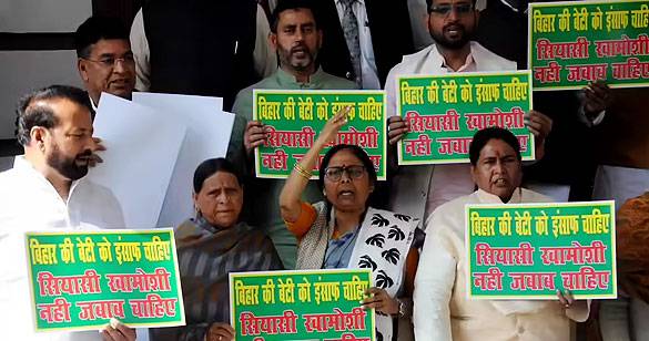 बिहार: राबड़ी देवी के नेतृत्व में महिला विधायकों ने विधानसभा के पोर्टिको में किया प्रदर्शन