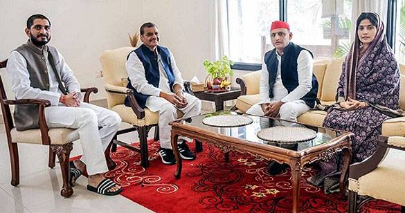 मैनपुरी उपचुनाव: पत्नी डिंपल के साथ चचा शिवपाल से मिलने पहुंचे अखिलेश