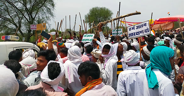 राजस्थान के भरतपुर में आरक्षण के लिए सैनी समाज का आंदोलन जारी