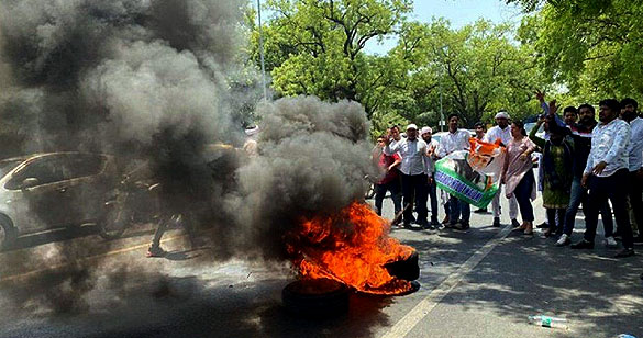 राहुल गांधी से पूछताछ के खिलाफ अब टायर फूंककर उबाल निकाल रहे कांग्रेसी