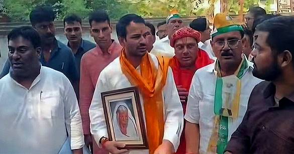 बिहार चुनाव: तेज प्रताप ने दाखिल किया नामांकन, दादी की तस्वीर लेकर पहुंचे
