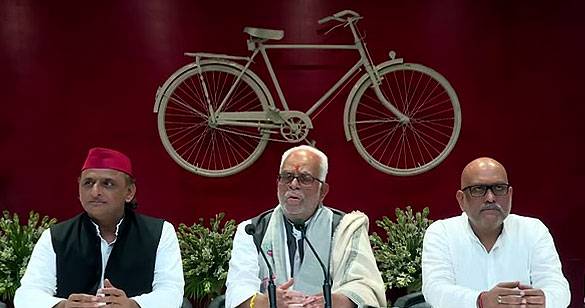 उपराष्ट्रपति चुनाव: बी. सुदर्शन रेड्डी ने अखिलेश के साथ किया मीडिया को संबोधित